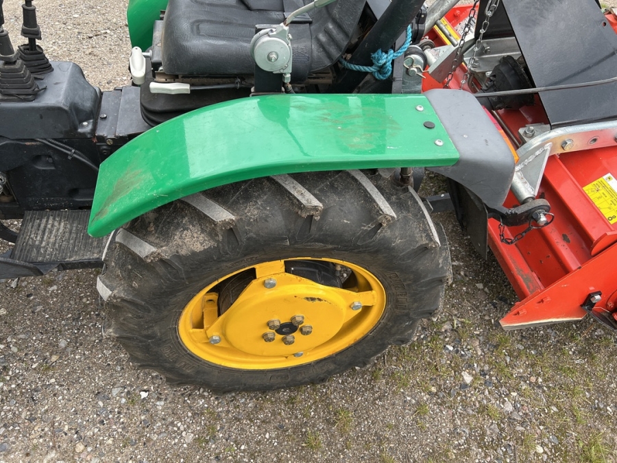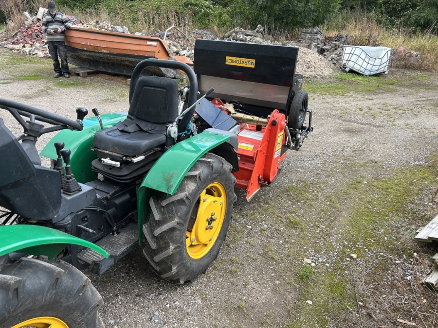 Traktor med fræser og såkasse