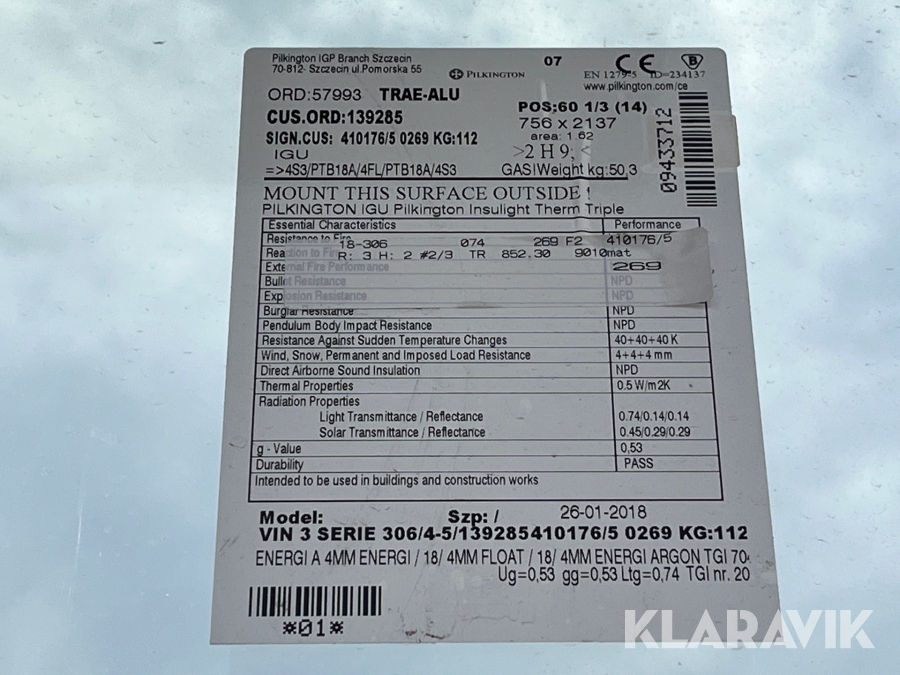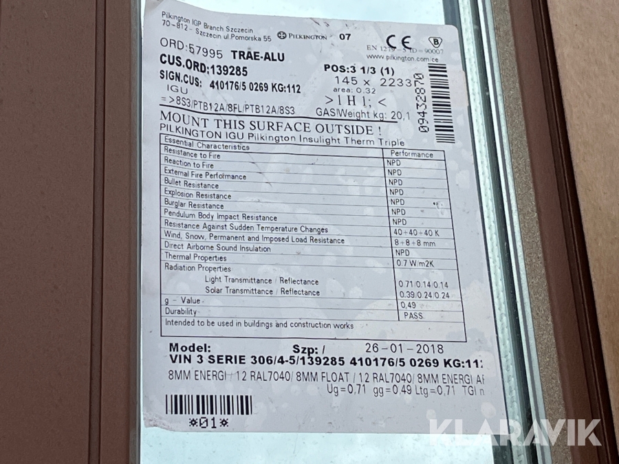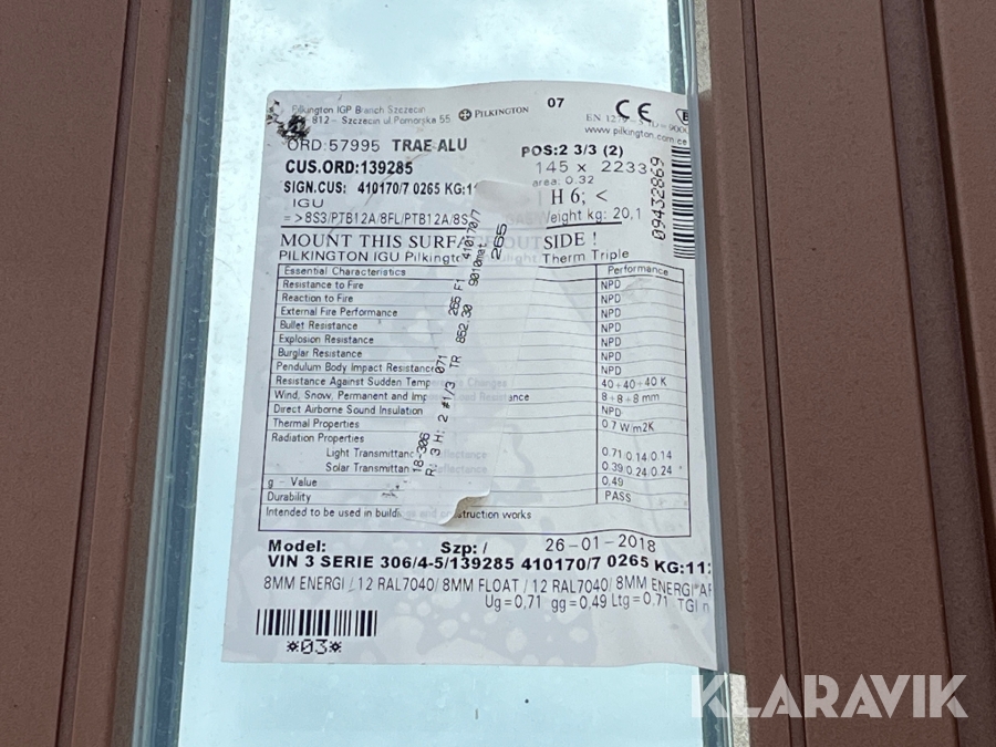 Som køber skal du kontrollere objektet ved afhentning Herefter kan der ikke gøres indvendinger. Hvis objektet adskiller sig væsentligt fra beskrivelsen, skal Klaravik kontaktes inden objektet fragtes (bemærk, at der gælder særskilte vilkår for konkursauktioner). Alle objekt findes hos den sælgende virksomhed, og du som køber har ansvar for afhentning og fragt. Som køber har du 12 dage til at afhente objektet, efter auktionen er afsluttet.