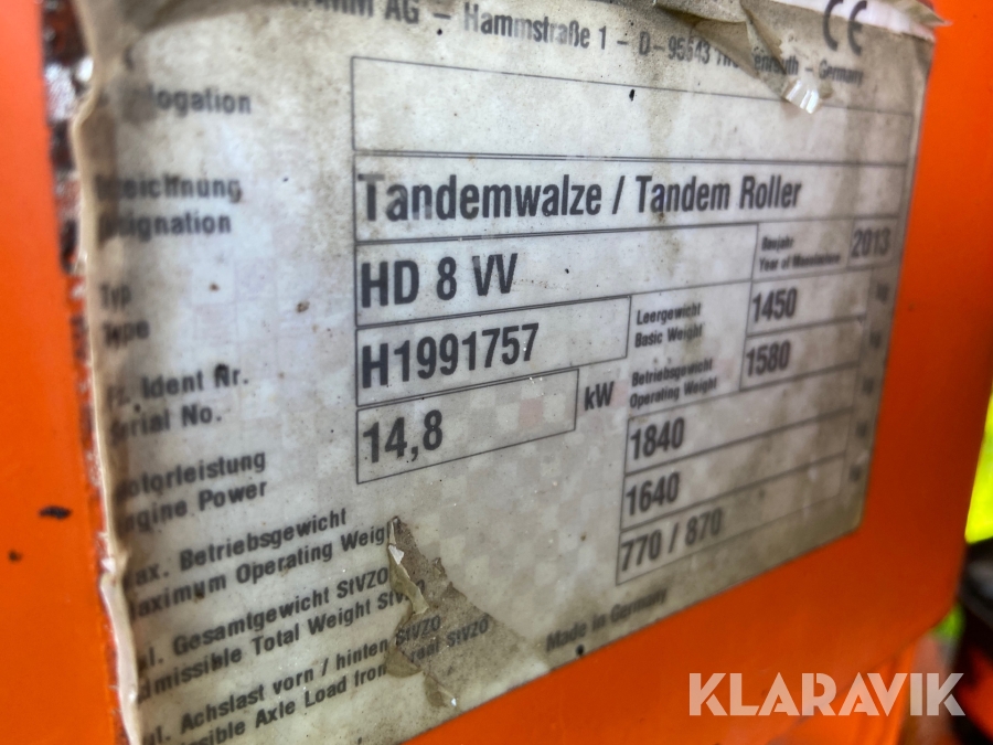 Tandemtromle Hamm HD8