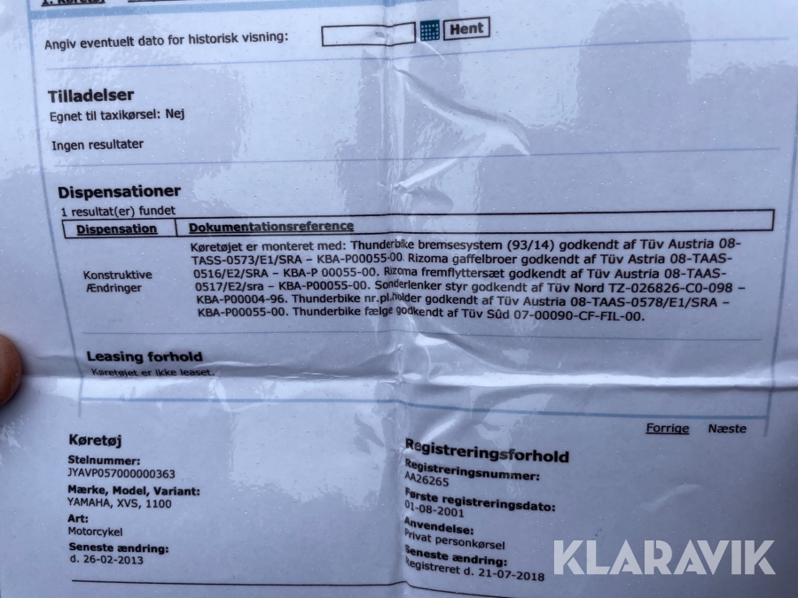 Som køber skal du kontrollere objektet ved afhentning Herefter kan der ikke gøres indvendinger. Hvis objektet adskiller sig væsentligt fra beskrivelsen, skal Klaravik kontaktes inden objektet fragtes (bemærk, at der gælder særskilte vilkår for konkursauktioner). Alle objekt findes hos den sælgende virksomhed, og du som køber har ansvar for afhentning og fragt. Som køber har du 12 dage til at afhente objektet, efter auktionen er afsluttet.