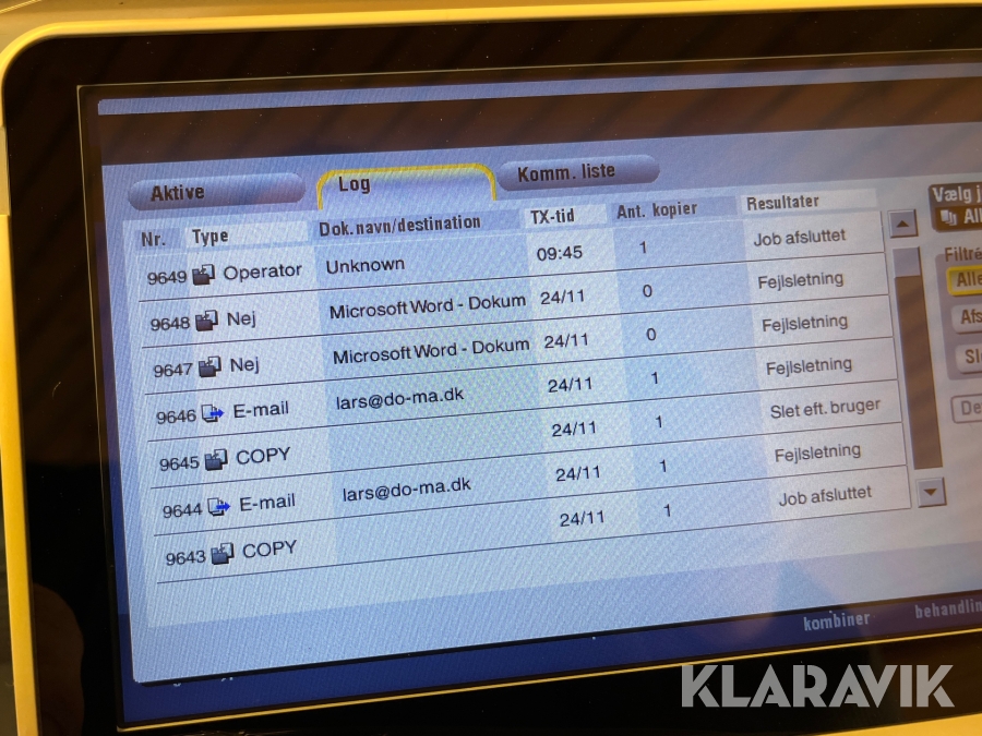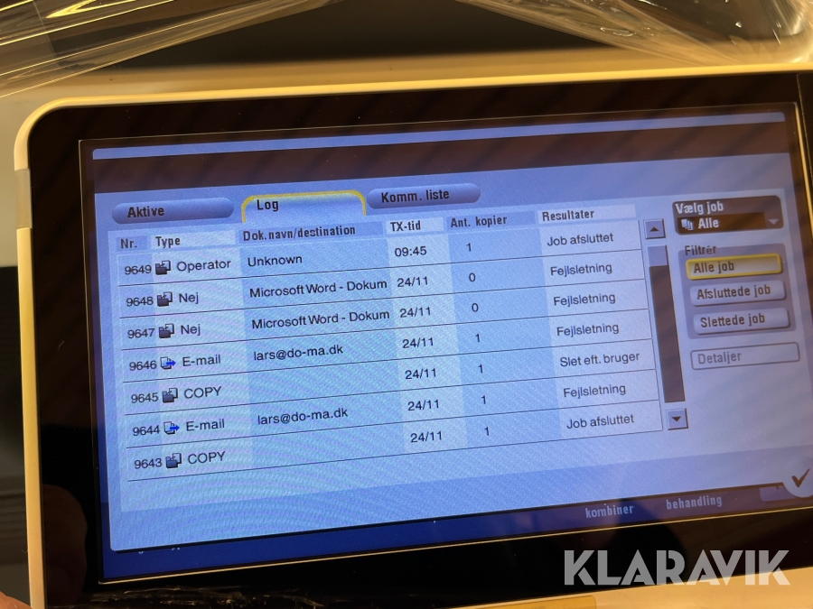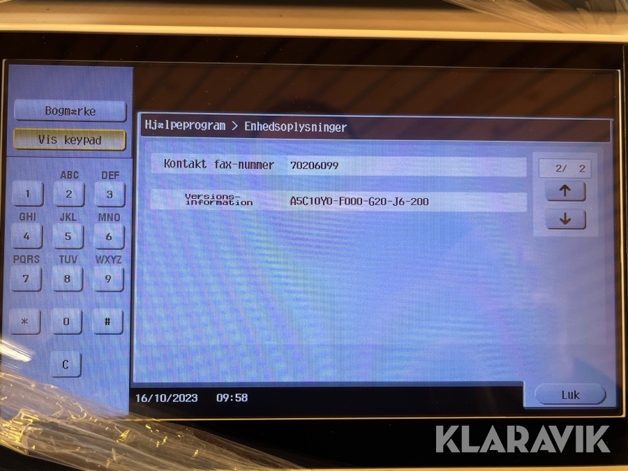 Som køber skal du kontrollere objektet ved afhentning Herefter kan der ikke gøres indvendinger. Hvis objektet adskiller sig væsentligt fra beskrivelsen, skal Klaravik kontaktes inden objektet fragtes (bemærk, at der gælder særskilte vilkår for konkursauktioner). Alle objekt findes hos den sælgende virksomhed, og du som køber har ansvar for afhentning og fragt. Som køber har du 15 dage til at afhente objektet, efter auktionen er afsluttet.