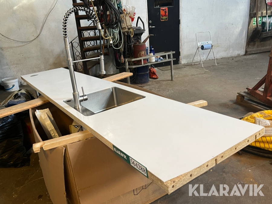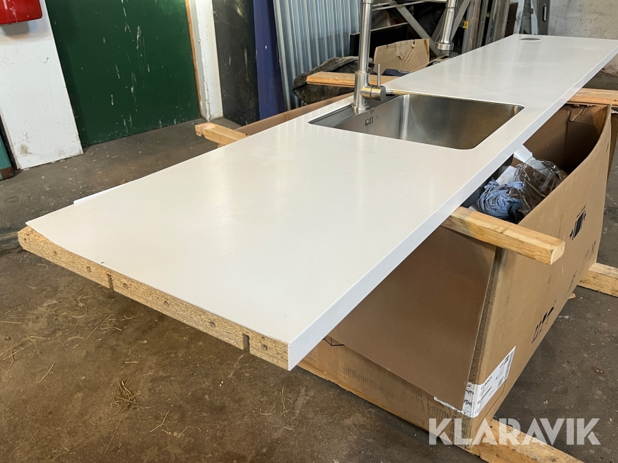 Corion bordplade med vask og armatur 310 x 60 x 4 cm