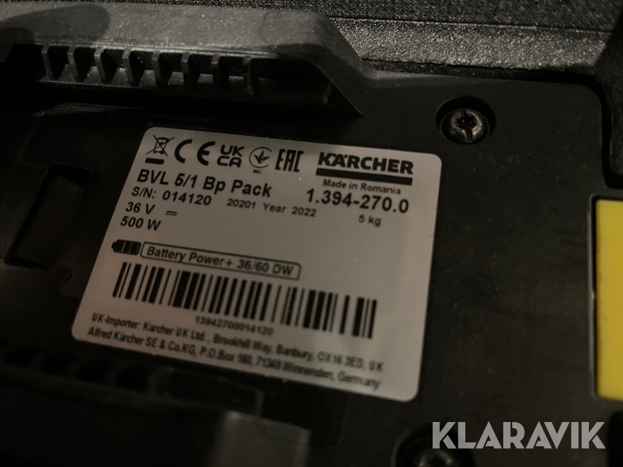 Rygstøvsuger Kärcher BVL5/1 Bp Pack batteri