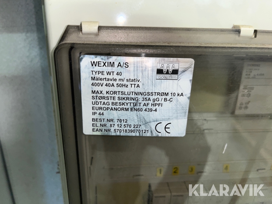 Byggestrømstavle med måler Wexim A/S WT 40