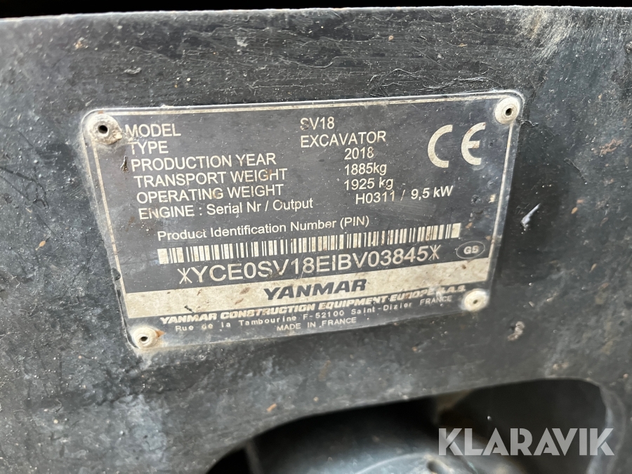 Gravemaskine Yanmar SV18 minigraver