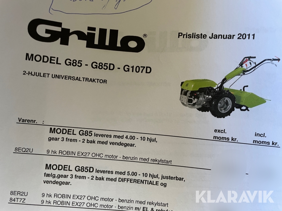Redskabsbærer Grillo G85 Subaru motor