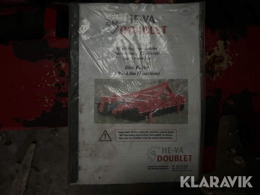 Kultivator He-Va Doublet Disc Roller 4. m 1. led. tallerkenharve Bugseret