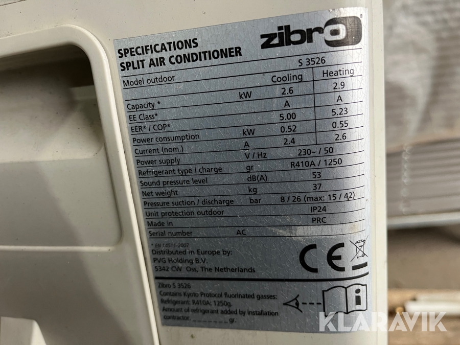 Luft til luft varmepumpe Zibro S3526