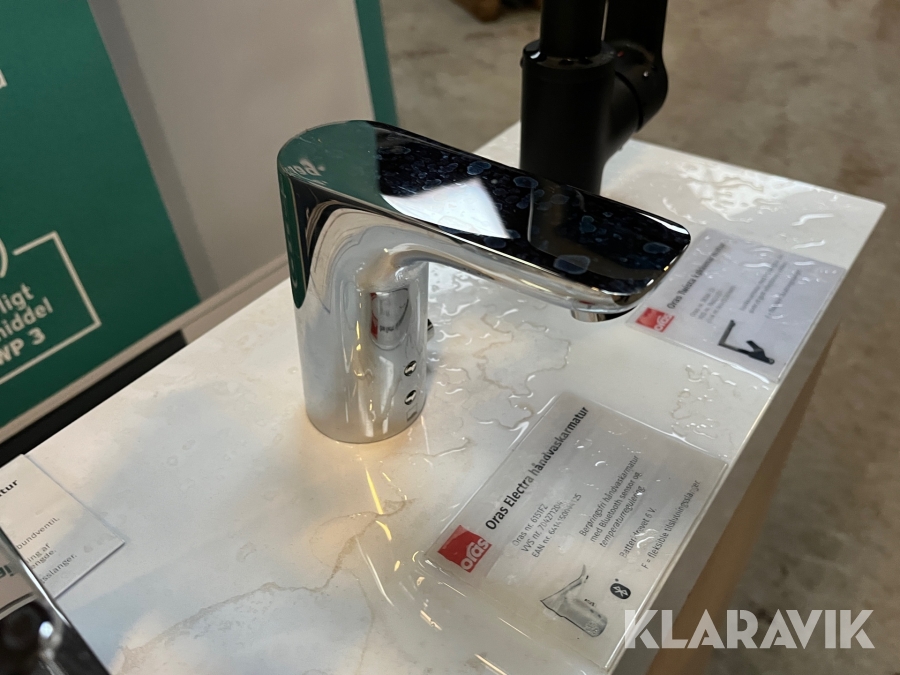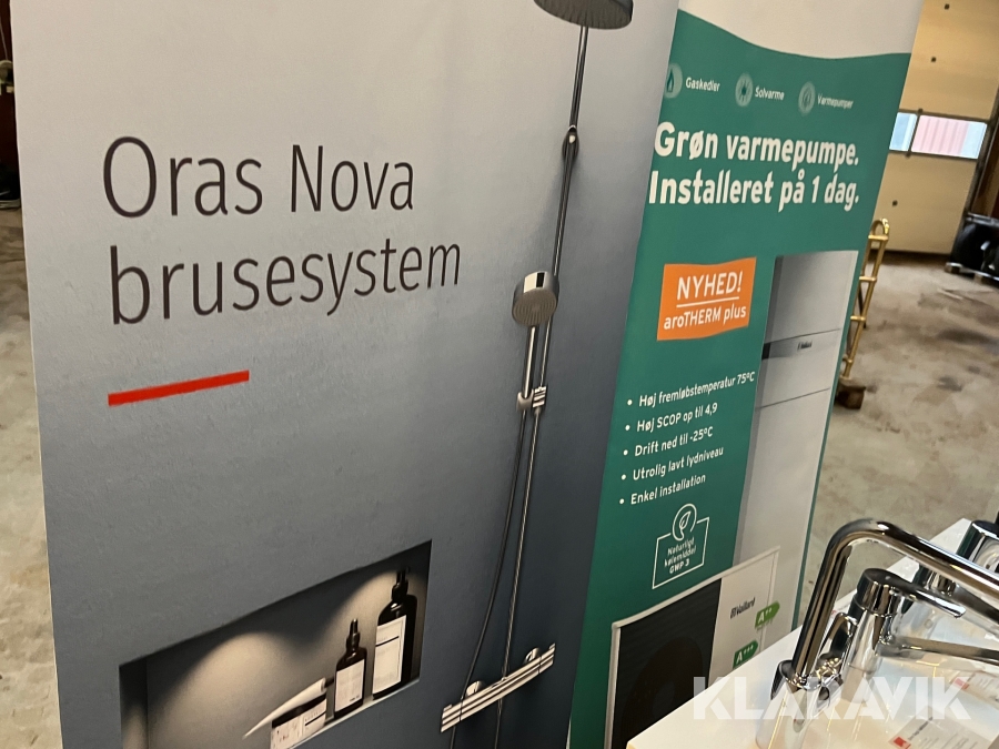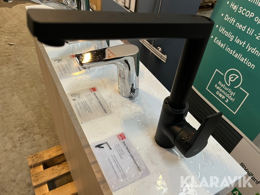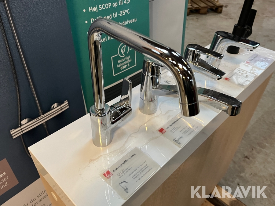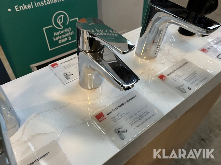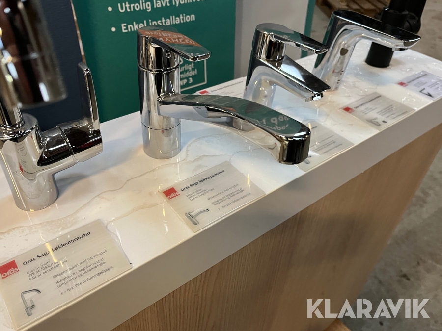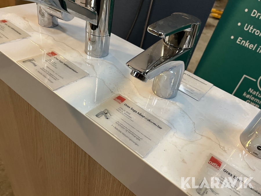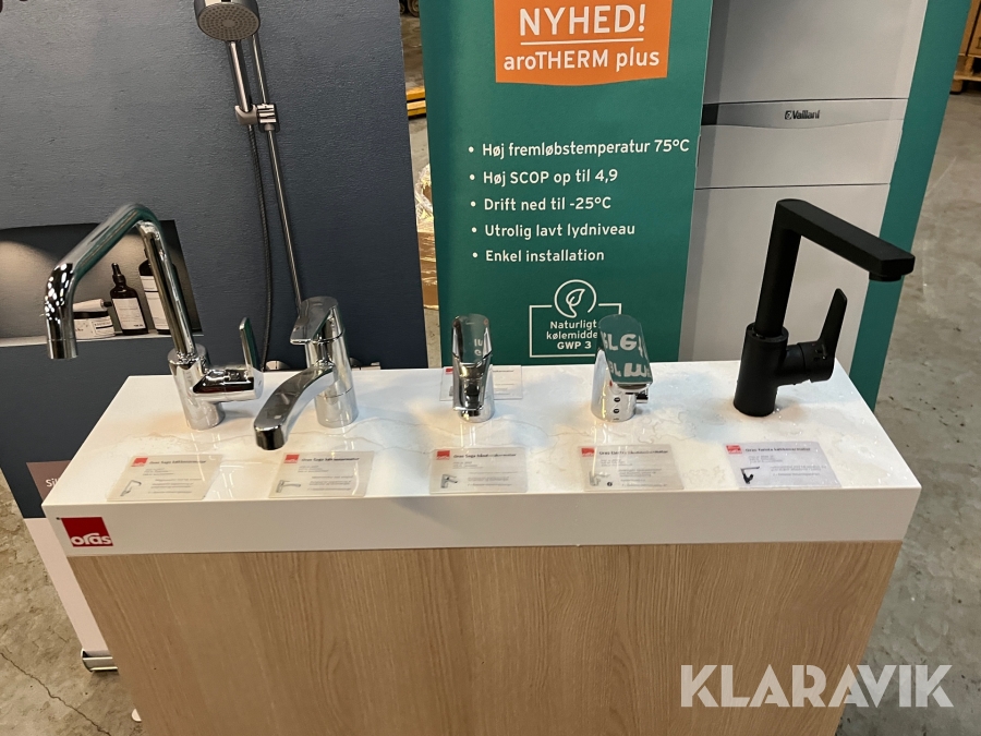 Udstillingspodie med 5 Oras armaturer.