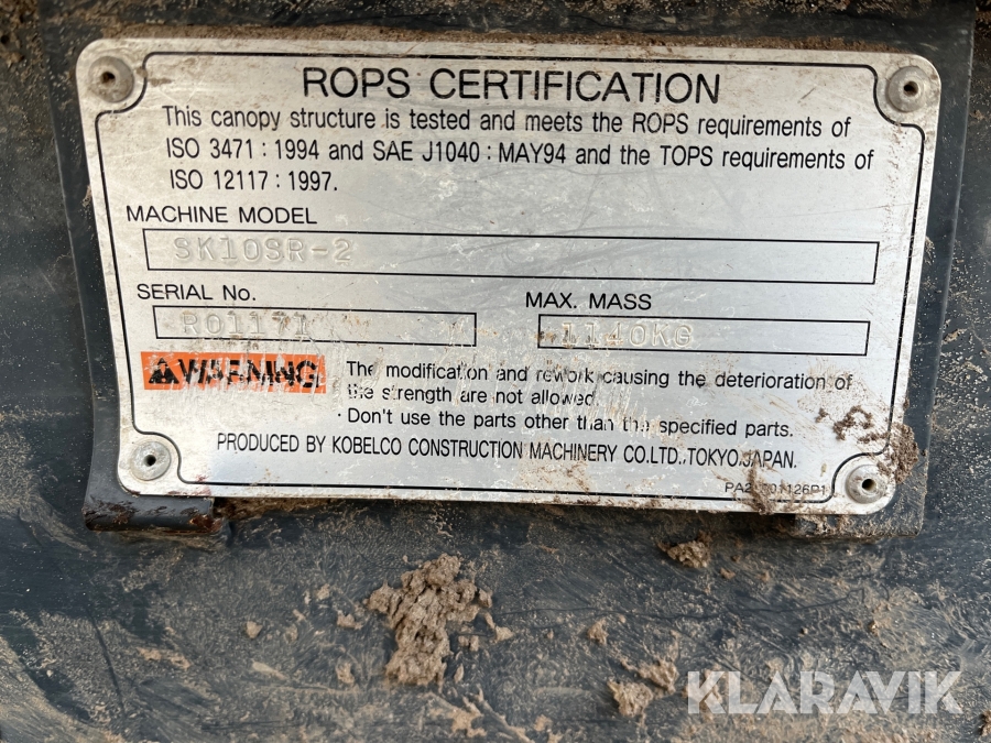 Minigraver Kobelco SK 10SR