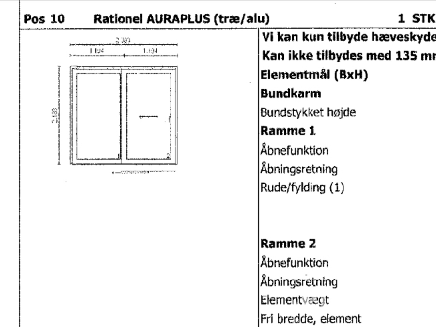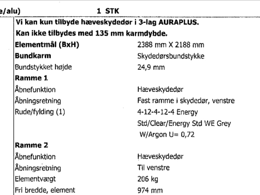 Skydedør Rationel Auraplus 2388x2188 træ alu