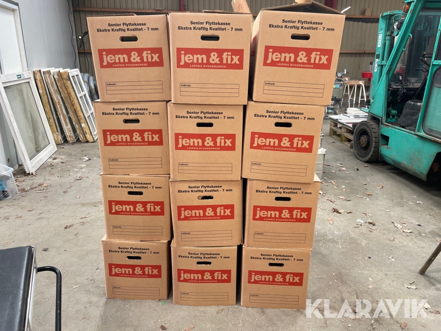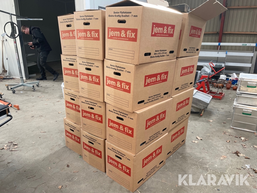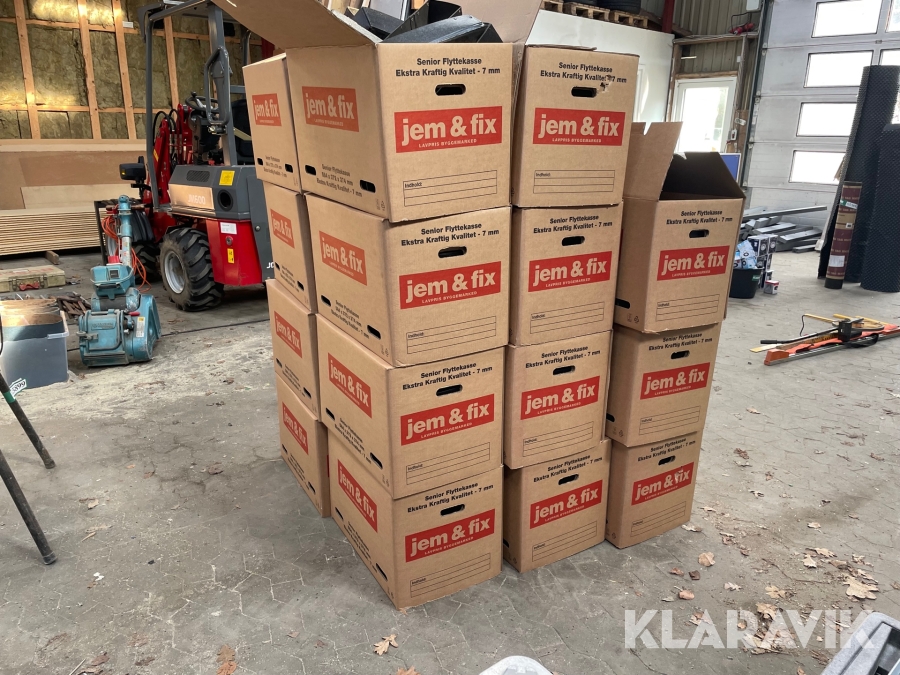 Sorteringskasser 23 flyttekasser fyldt