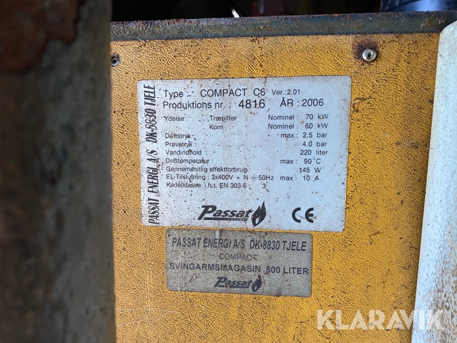 Container med pillefyr Passat Pille- og kornfyr 60–70 kW
