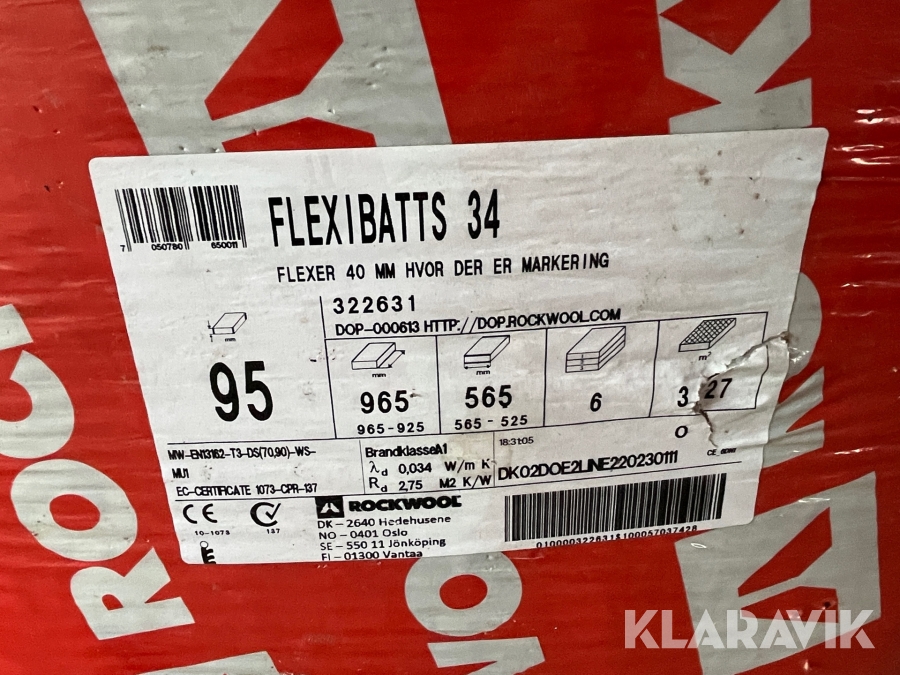 Isolering Rockwool Flexibatts 34 20 pakker 40mm