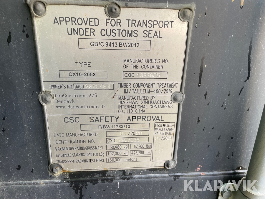 Container 20fods DanContainer CC10-2052