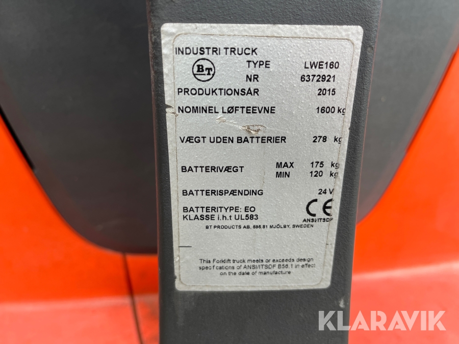 Palletruck BT LWE160 1600kg