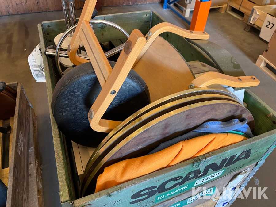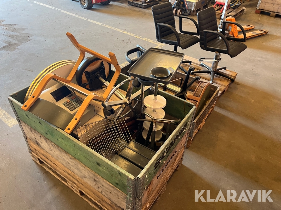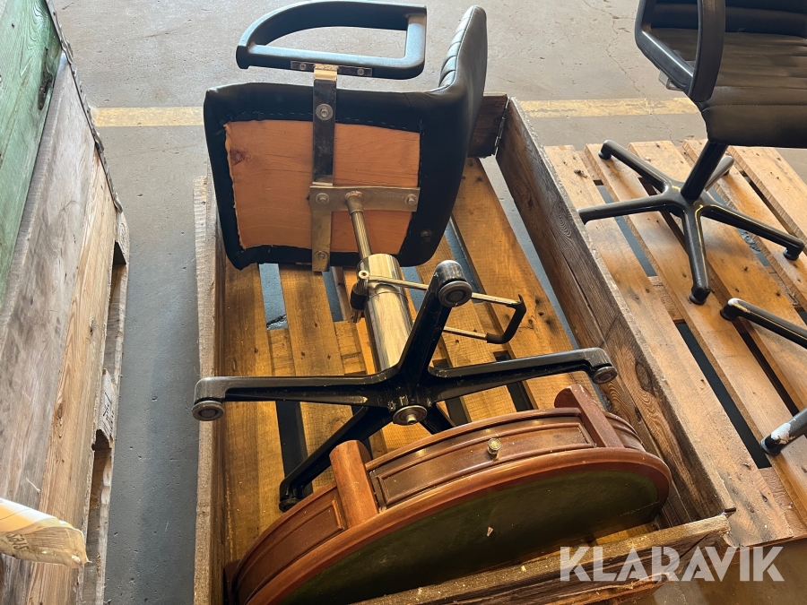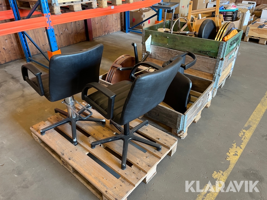 Frisør inventar stole, spejle, kasseapparat, borde - 3 paller