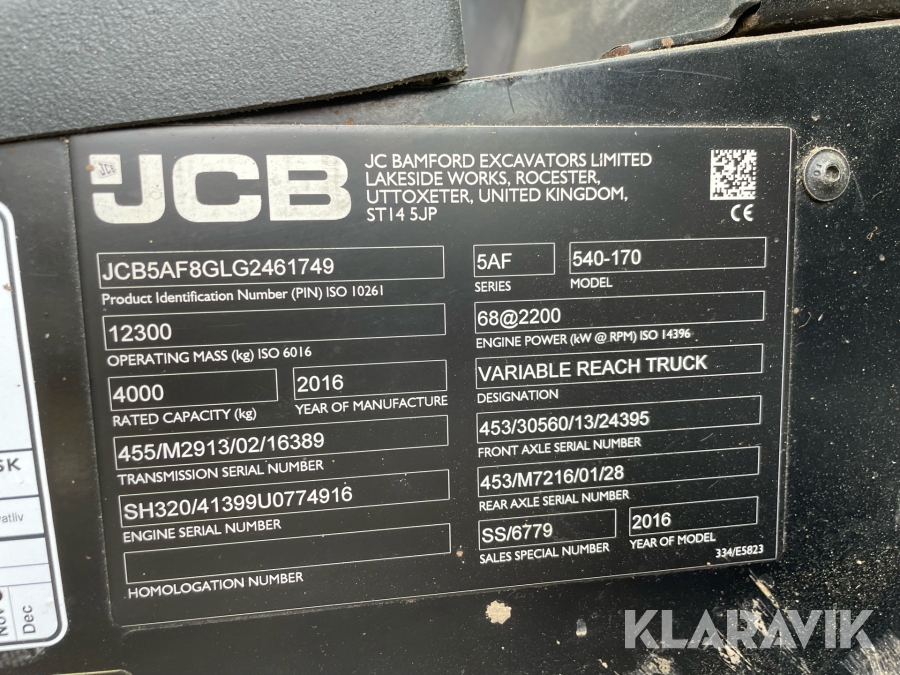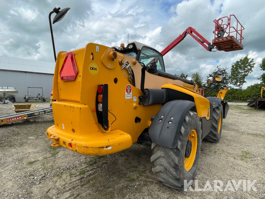 Teleskoplæsser JCB 540-170 17 meter inklusivskovl, gafler og mandskabskurv.