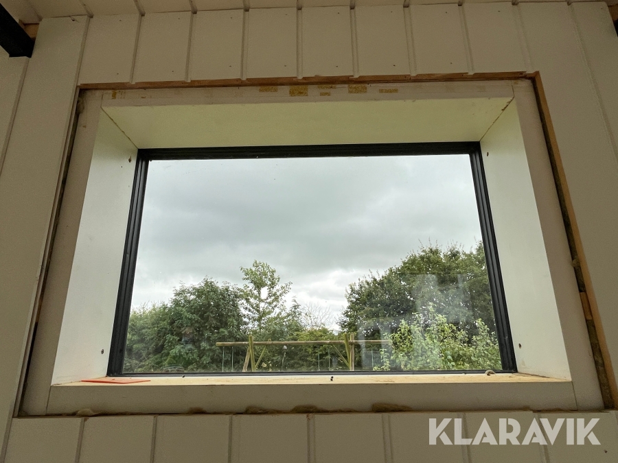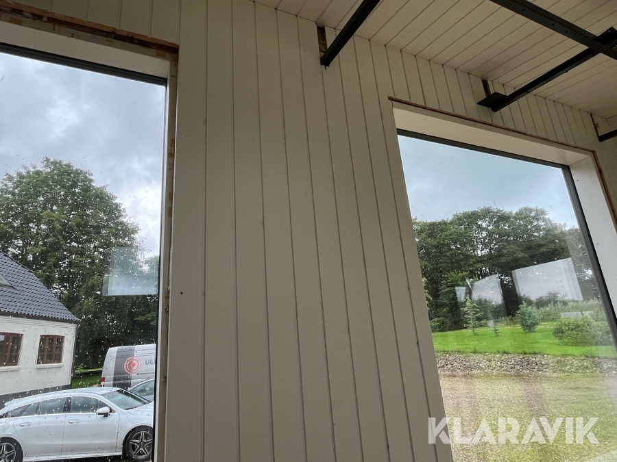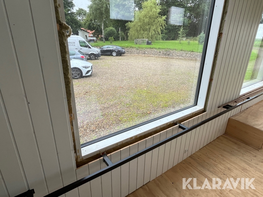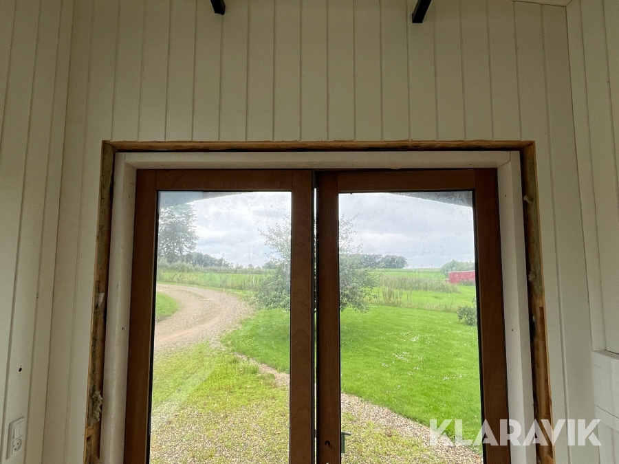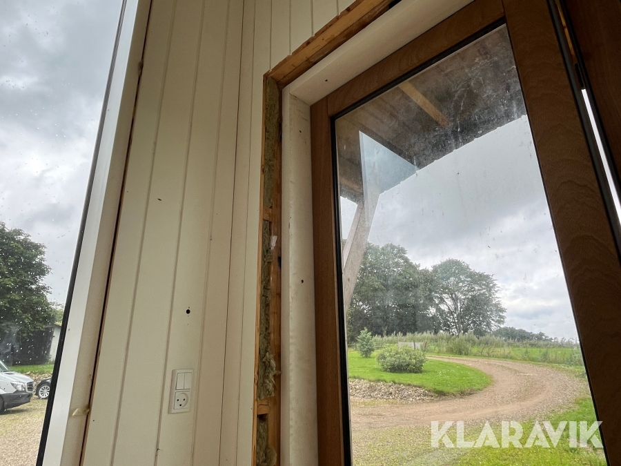 - Vinduer, der er 3 lags træ/aluminium og de store vinduer er lamineret udvendig