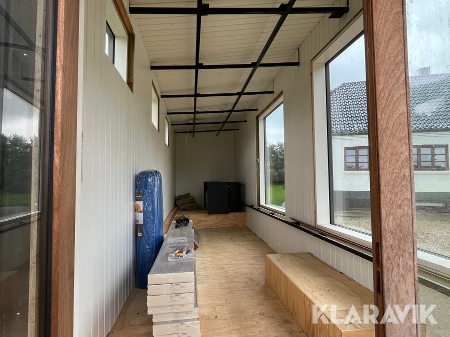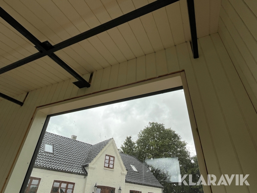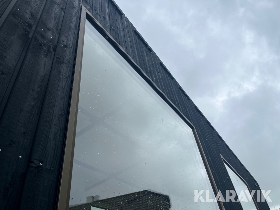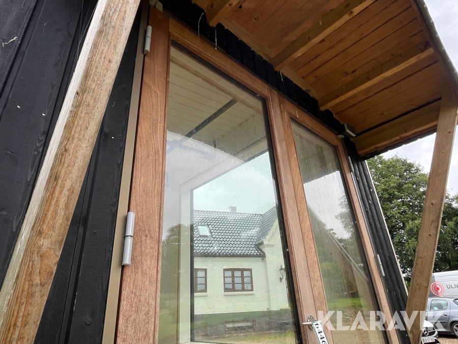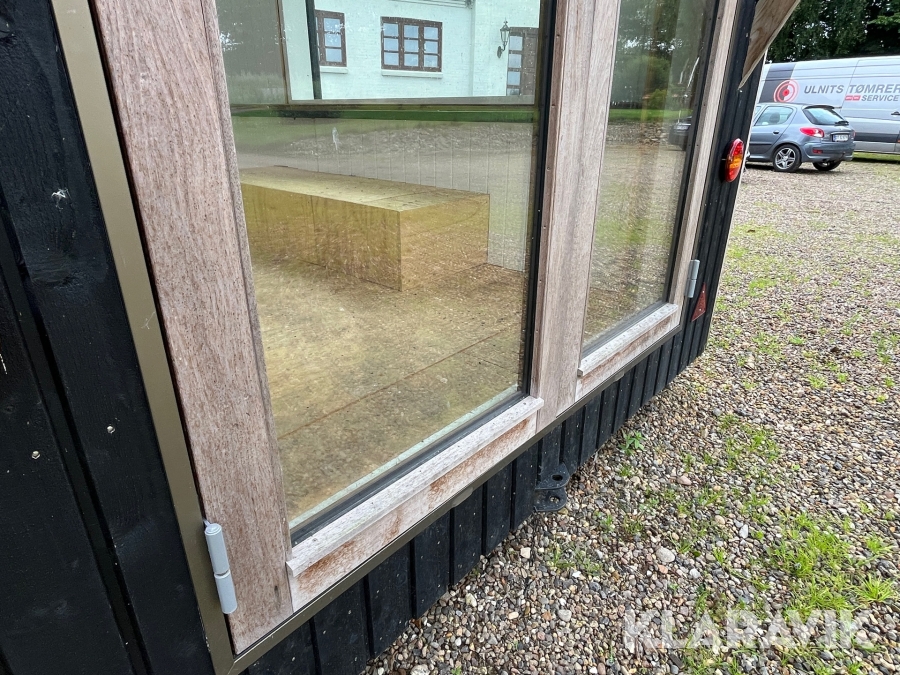 - Vinduer, der er 3 lags træ/aluminium og de store vinduer er lamineret udvendig