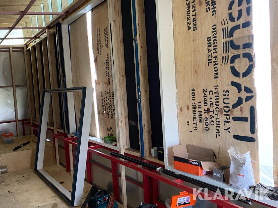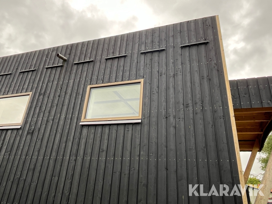 - Beklædning udvendigt med Thermo Wood og malet på begge sider