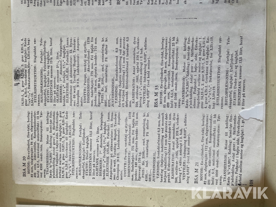 Veteran motorcykel BSA M 21