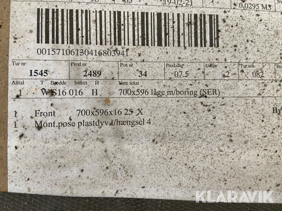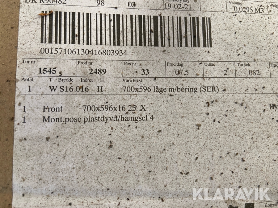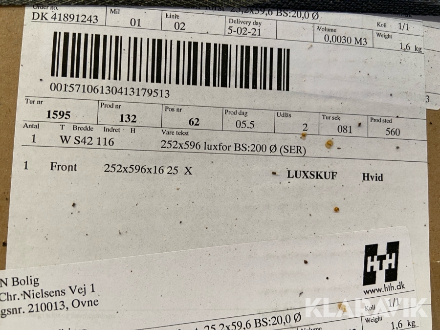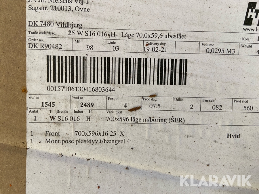 Som køber skal du kontrollere objektet ved afhentning Herefter kan der ikke gøres indvendinger. Hvis objektet adskiller sig væsentligt fra beskrivelsen, skal Klaravik kontaktes inden objektet fragtes (bemærk, at der gælder særskilte vilkår for konkursauktioner). Alle objekt findes hos den sælgende virksomhed, og du som køber har ansvar for afhentning og fragt. Som køber har du 15 dage til at afhente objektet, efter auktionen er afsluttet.