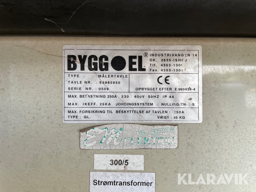 Byggestrøm tavle Bygg el 2x125A