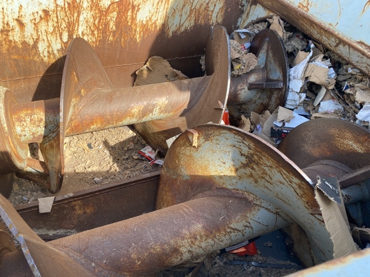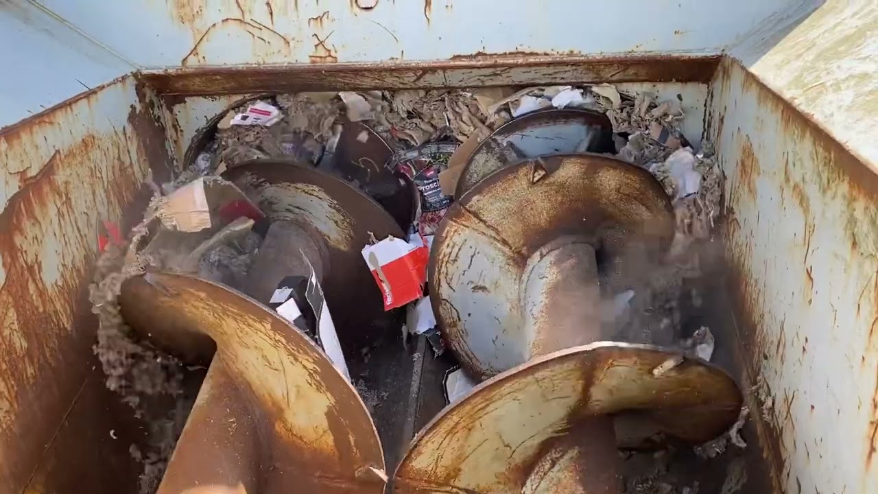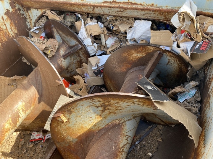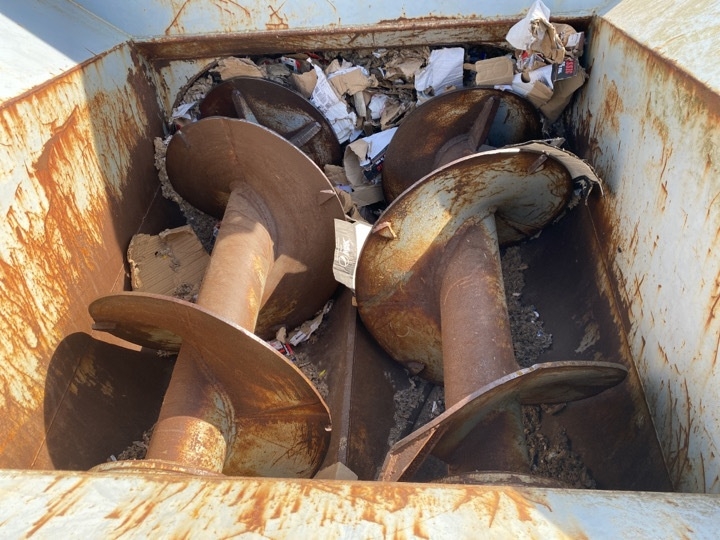 Containeren er ca halvt fuld af pap.