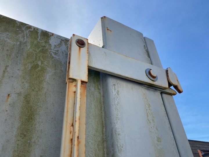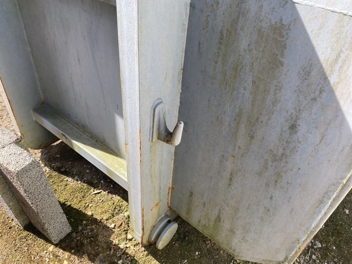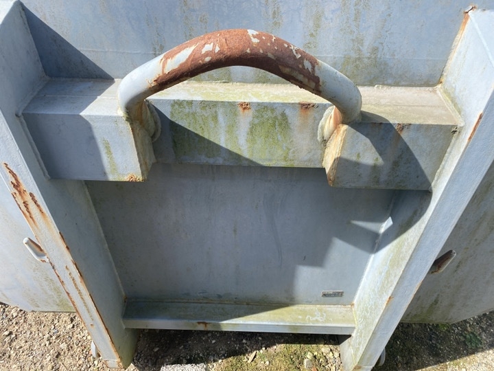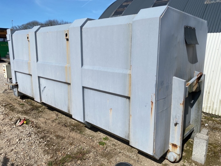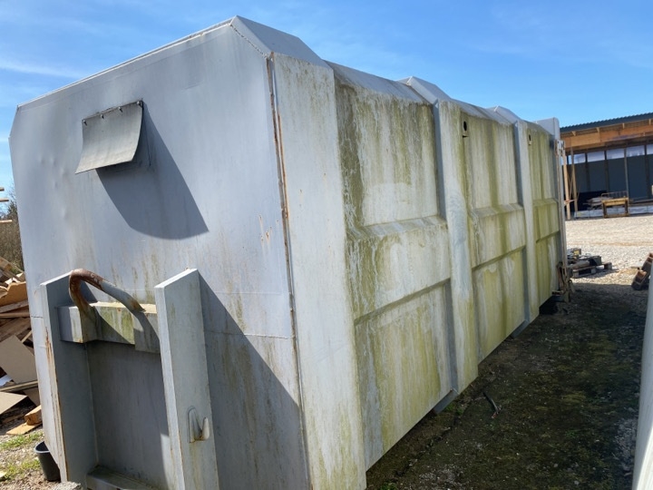 Container er lukket i toppen og let konisk.
