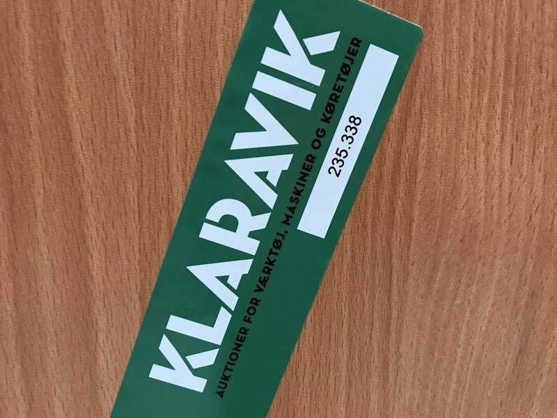Som køber skal du kontrollere objektet ved afhentning Herefter kan der ikke gøres indvendinger. Hvis objektet adskiller sig væsentligt fra beskrivelsen, skal Klaravik kontaktes inden objektet fragtes (bemærk, at der gælder særskilte vilkår for konkursauktioner). Alle objekt findes hos den sælgende virksomhed, og du som køber har ansvar for afhentning og fragt. Som køber har du 12 dage til at afhente objektet, efter auktionen er afsluttet.
