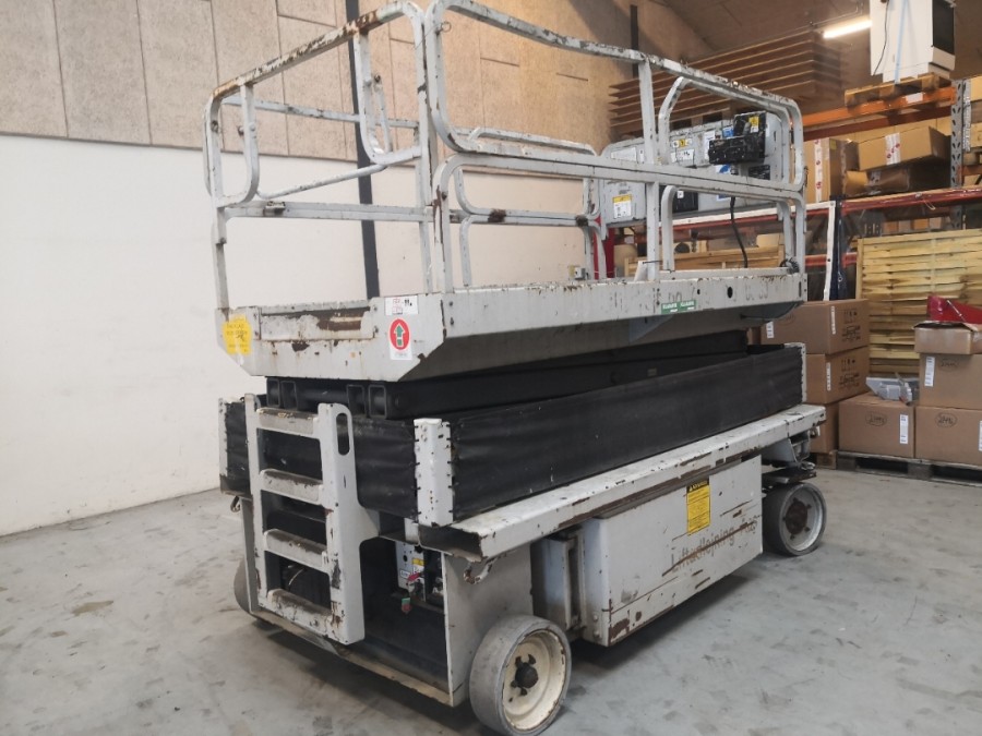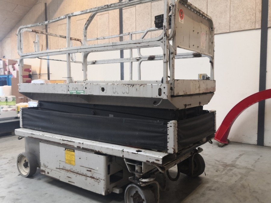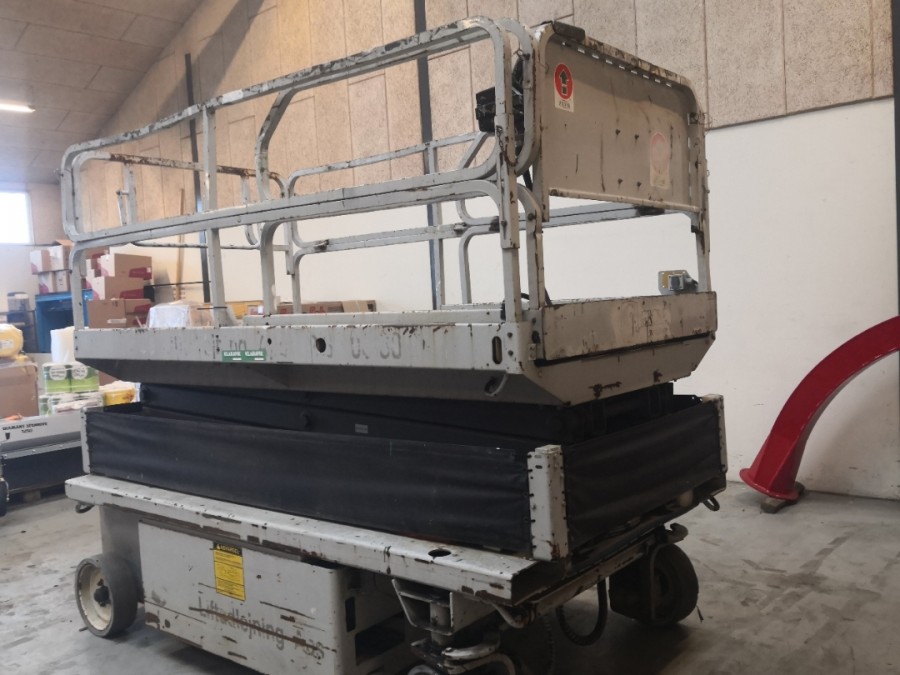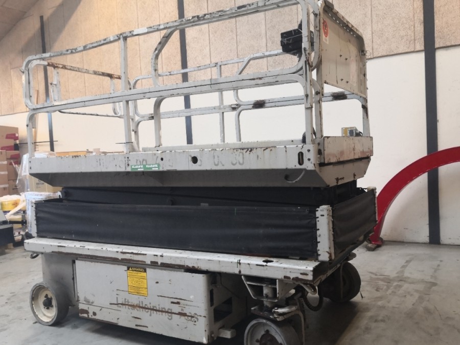 Funktionsdygtig Saxelift. Sælger oplyser at batte er udskiftet inden for de sidste 2 år. Øvrig Stand og specifikationer iflg billeder og video.